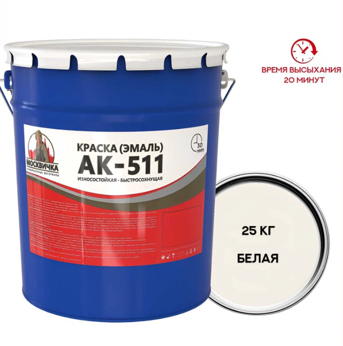 Эмаль КраскаВо МОСКВИЧКА АК-511 белая, 25 кг для дорожной разметки