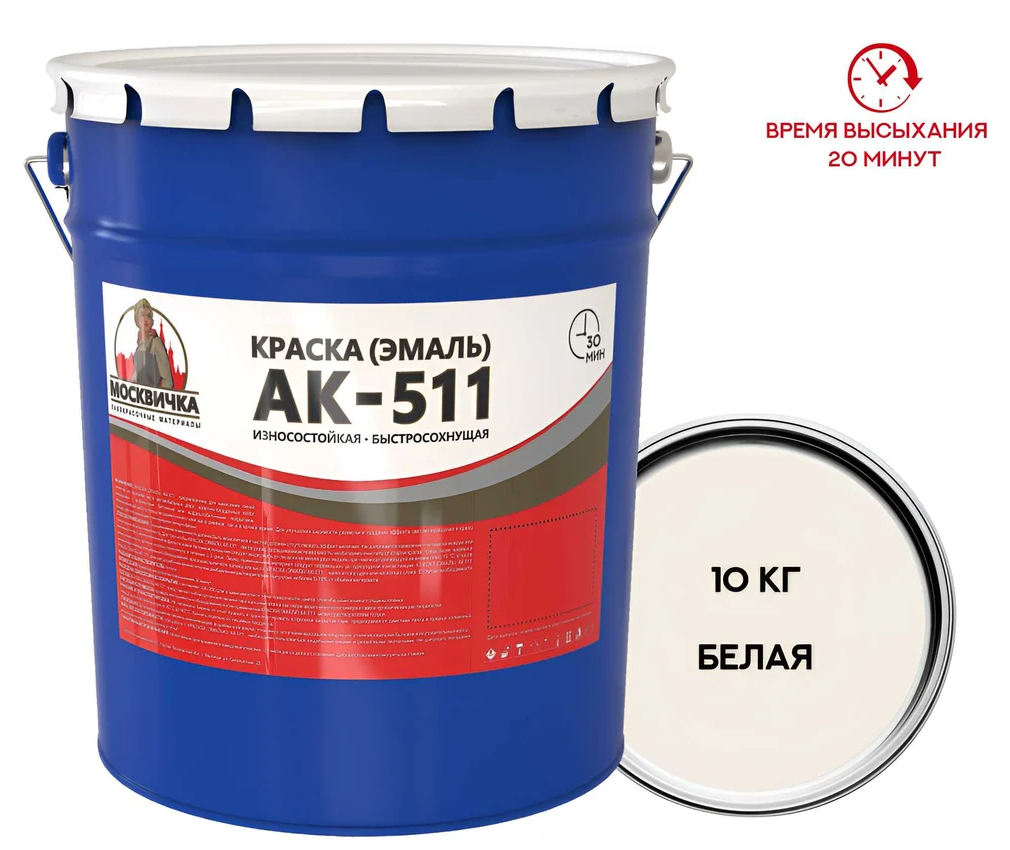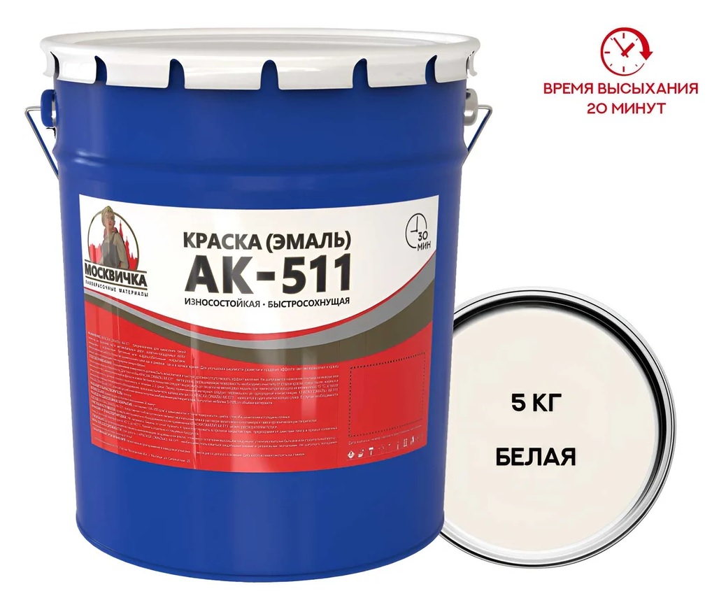 Эмаль КраскаВо МОСКВИЧКА АК-511, 5 кг для дорожной разметки, белая, серая
