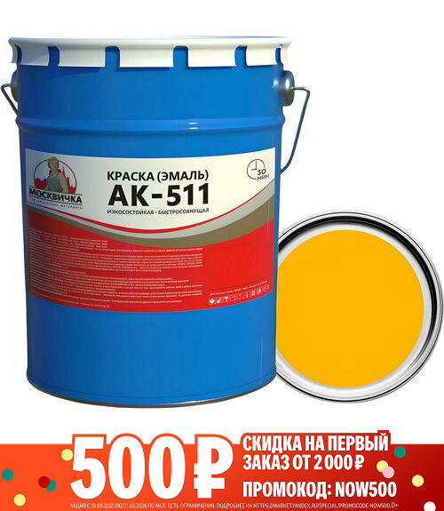 Эмаль КраскаВо МОСКВИЧКА АК-511 желтая 25кг, для дорожной разметки
