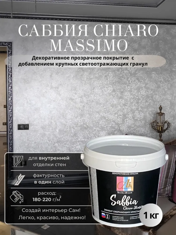 Декоративная краска Sabbia с перламутровым эффектом и добавлением светоотражающих гранул Алинпродукт